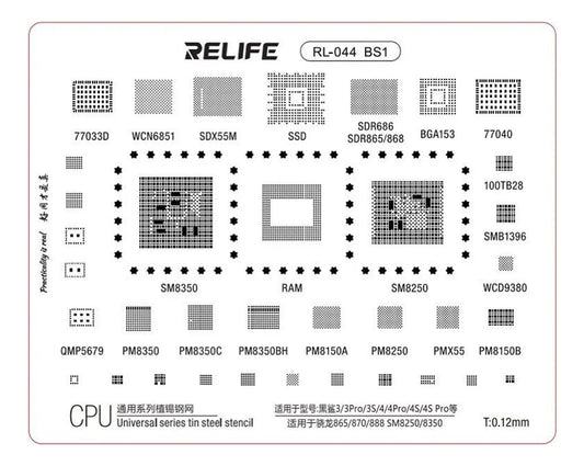 STENCIL SERIE GENERAL 0.12MM RELIFE RL-044 BS1 Snapdragon 865/870/888 SM8250/8350