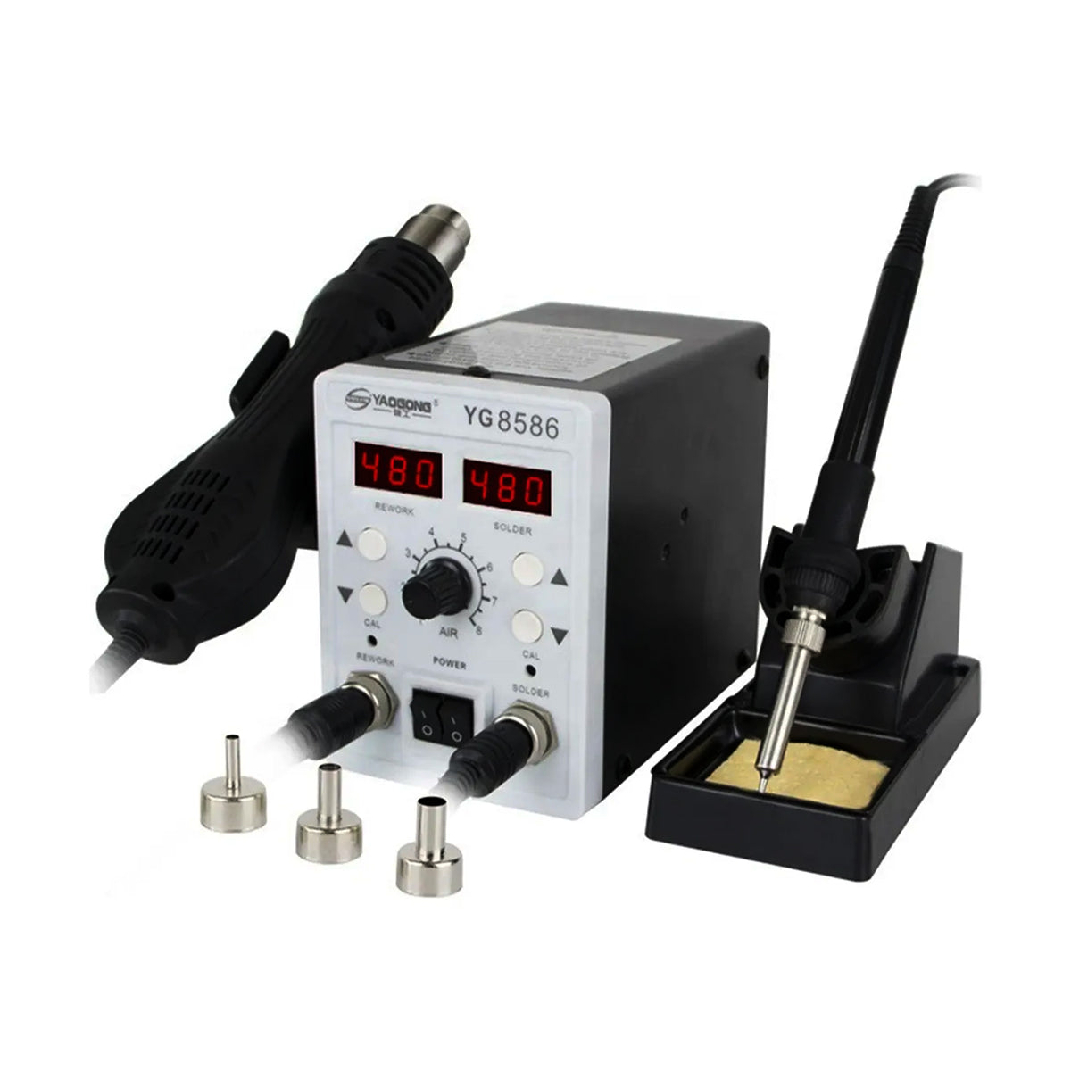 Estación 2 en 1 Yaogong YG-8586: Potencia doble, espacio inteligente