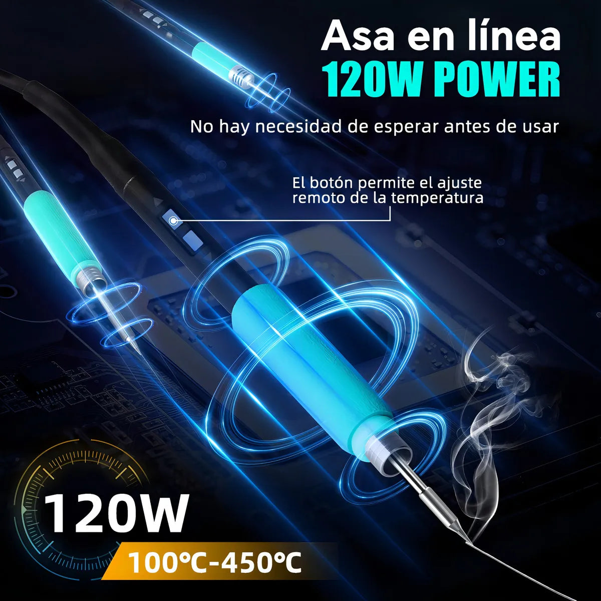 Función de compensación de temperatura de la punta del soldador, de modo que la punta del soldador se mantenga siempre a la temperatura establecida.