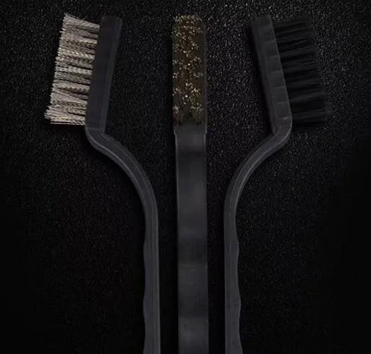 - ¿En qué tipos de superficies se pueden utilizar los cepillos? R: Los cepillos del kit se pueden usar en superficies duras y resistentes, como metal, vidrio y plástico.