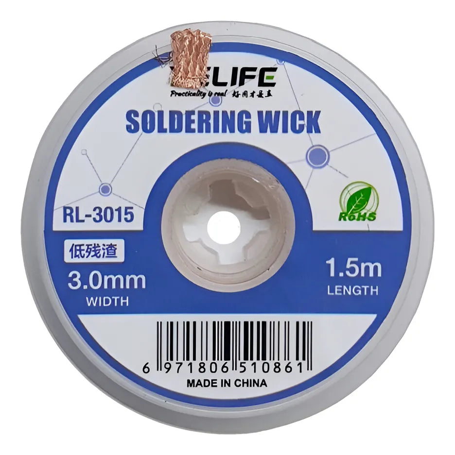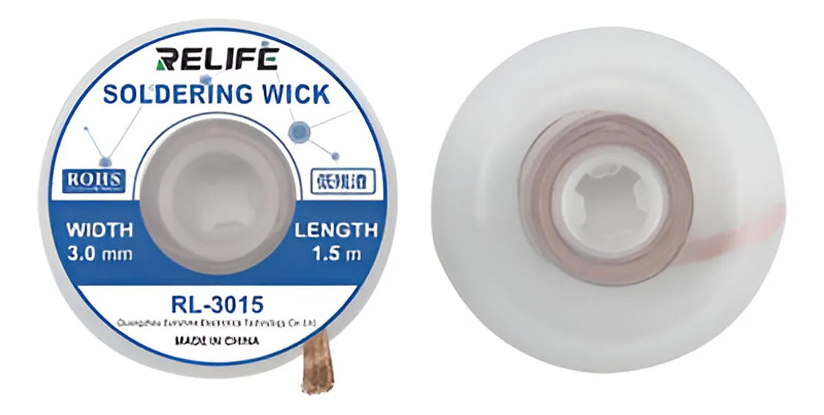 La malla Relife RL-3015 es una herramienta esencial en el servicio técnico para retirar el exceso de estaño en placas base de celulares y componentes SMD. Gracias a su trenzado de cobre de alta pureza, garantiza una absorción rápida y limpia, protegiendo las pistas del circuito.