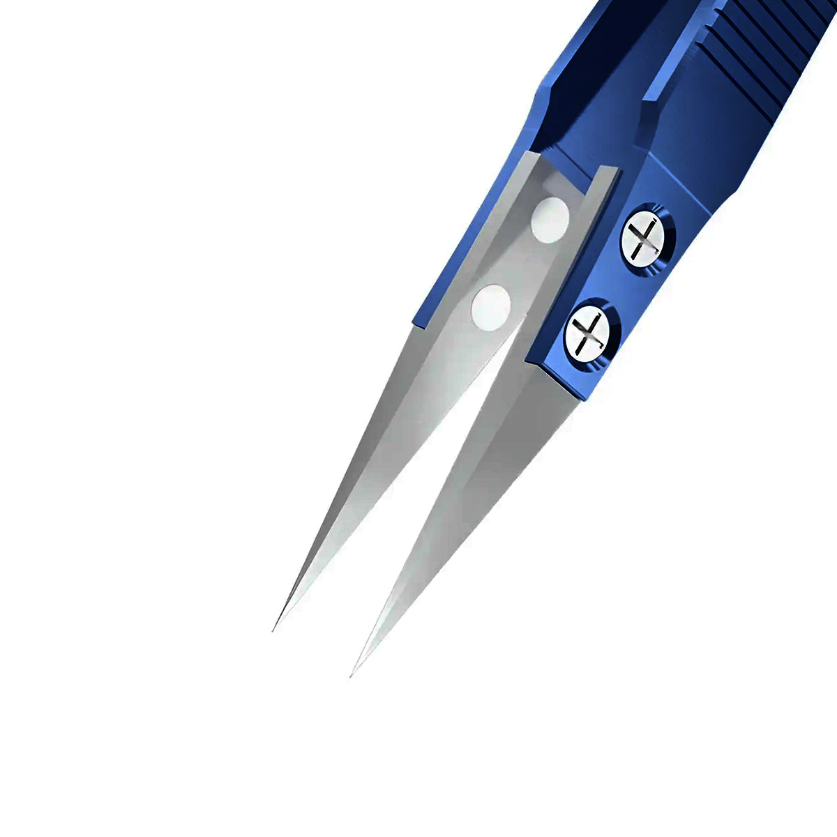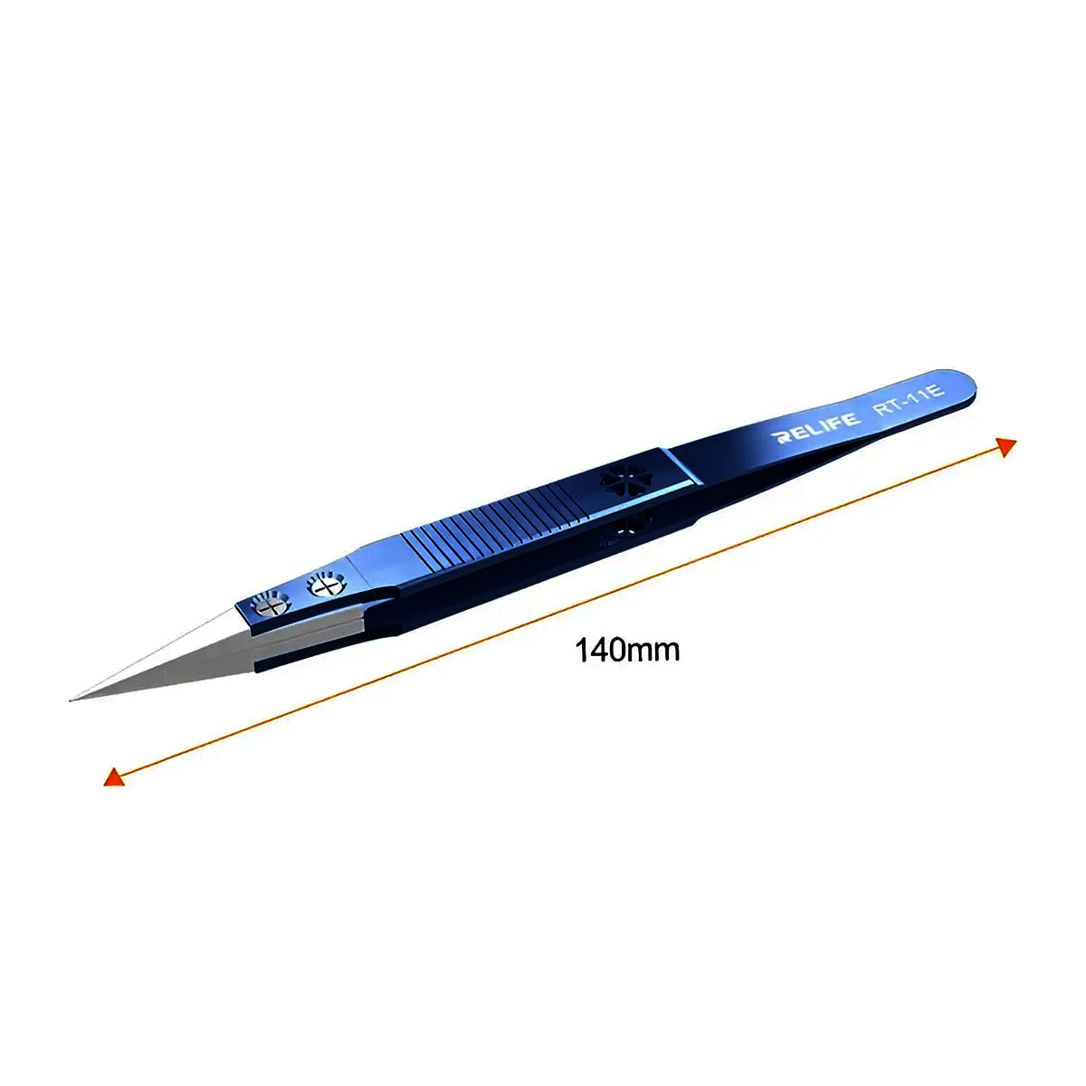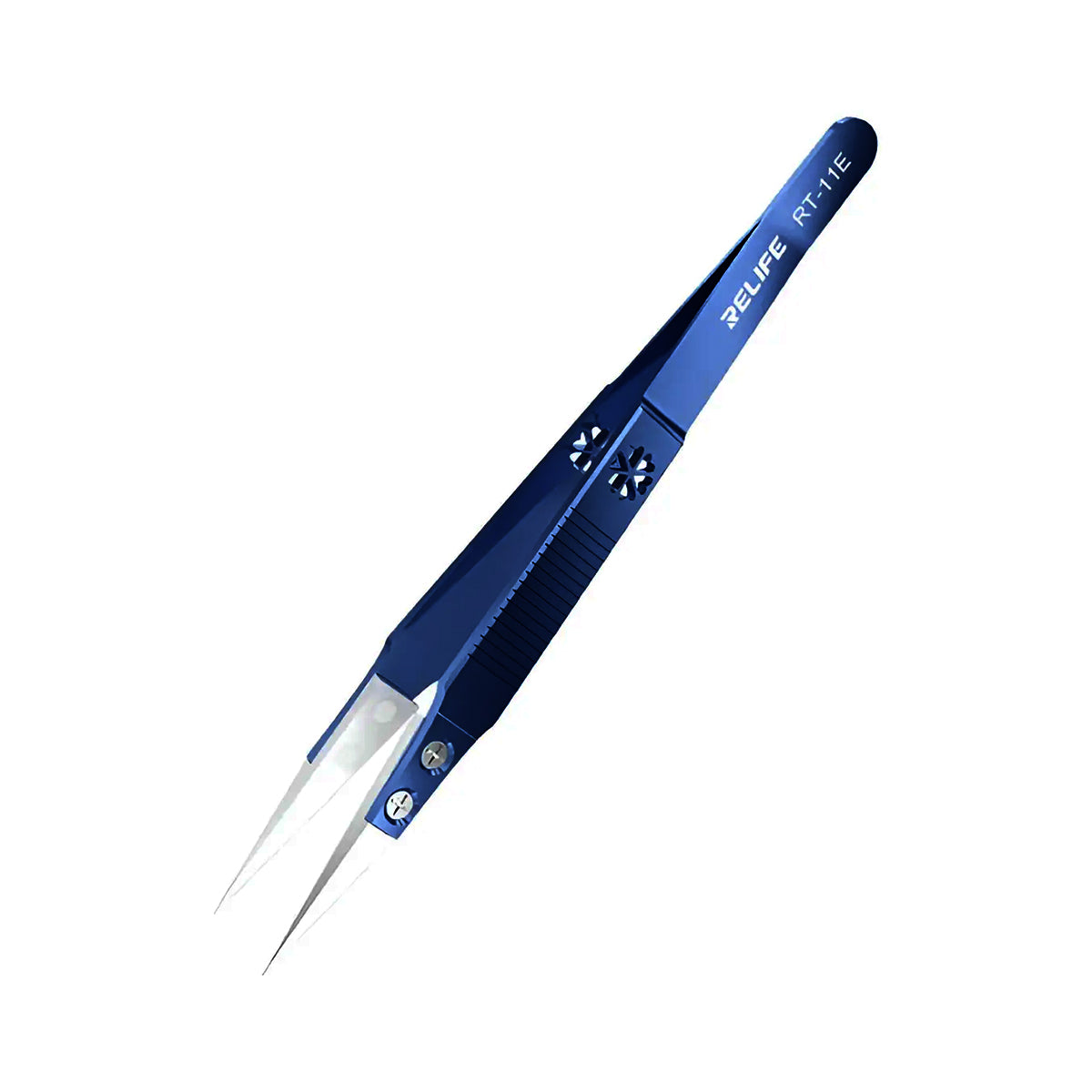 Las pinzas Relife RT-11E están diseñadas para la élite de la microelectrónica. Fabricadas con una aleación de acero de alta dureza y puntas procesadas por CNC, ofrecen una alineación perfecta y un cierre hermético. Son la herramienta obligatoria para realizar jumpers, manipular integrados bajo el microscopio y trabajar en las zonas más densas de placas iPhone, Android y MacBook.